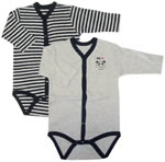 ボディシャツとはコンビ肌着の股下の部分をとったものです。股部分をスナップで留めるようになっているので、他の肌着と違いもたつきがありません。上から着せるタイプのものは、首が据わっていない赤ちゃんには不適です。そのため、首が据わる3-4ヶ月目以後の肌着といえます。
